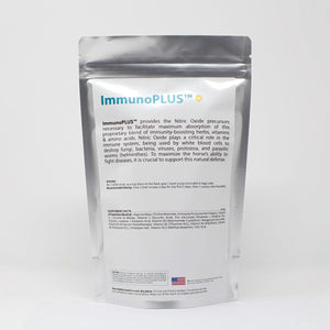 ImmunoPLUS™ provides the Nitric Oxide precursors necessary to facilitate maximum absorption of this proprietary blend of immunity-boosting herbs, vitamins and amino acids. Nitric Oxide plays a critical role in the immune system, being used by white blood cells to destroy fungi, bacteria, viruses, protozoa, and parasitic worms (helminthes). To maximize the horse’s ability to fight diseases, it is crucial to support this natural defense.