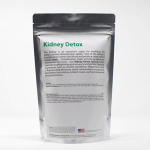 The kidney is an important organ for enabling the body’s normal detoxification ability. One of the kidney’s functions is to cleanse the blood and produce urine, which expels waste. Detoxification helps remove or decrease environmental toxins. Our Kidney Detox formula helps maintain healthy kidney and urinary tract function. Natural ingredients such as Zeolite, Dandelion, Peppermint, and L-Arginine help eliminate waste, relieve stress and general discomfort from kidney related issues, such as behavioral and performance.
